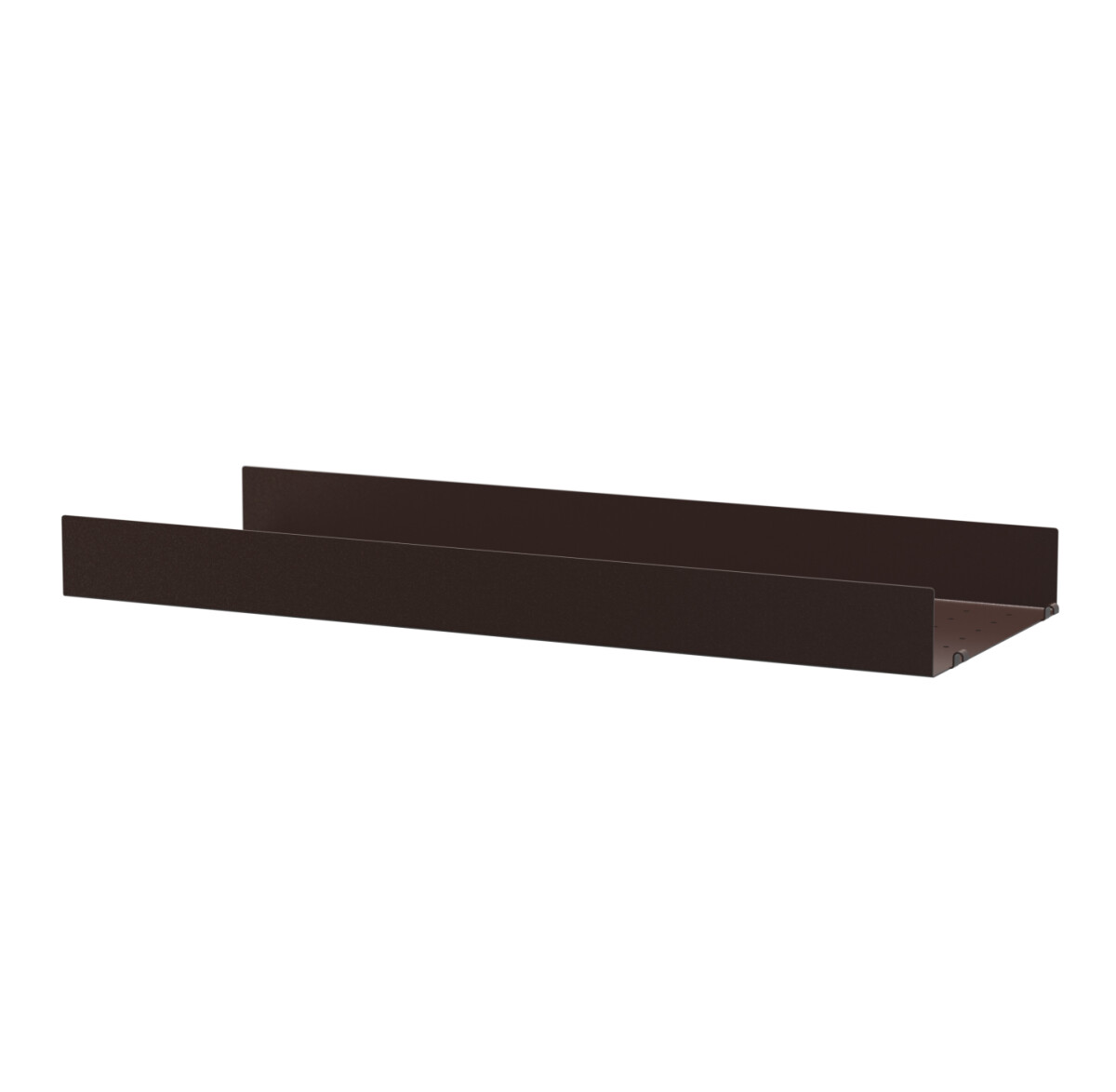 Metallihylly korkealla reunalla, leveys 78 cm. Reunan korkeus 7 cm. Syvyys 30 cm.