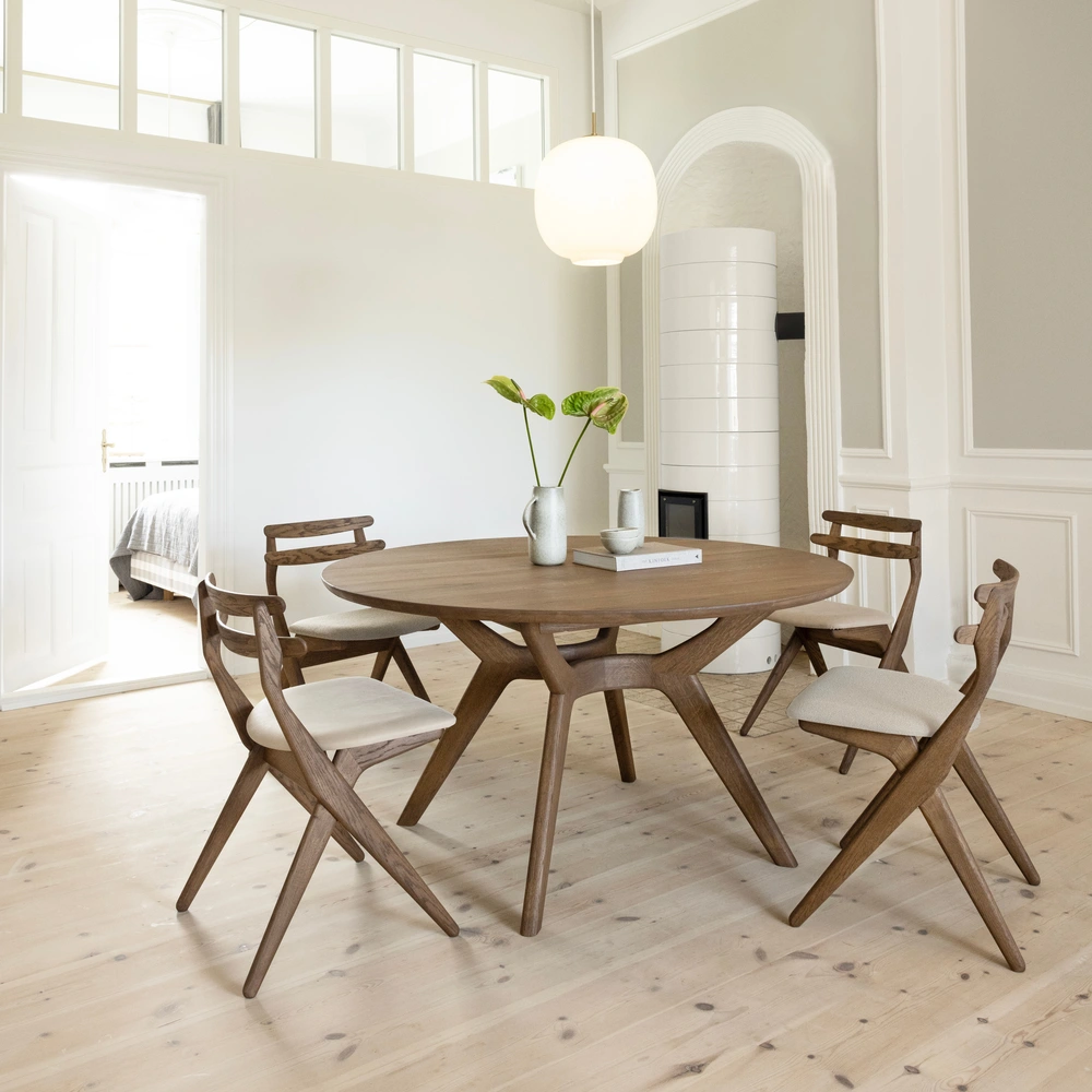 Tämä tukeva, mutta samalla sulavalinjainen ruokapöytä on saanut nimensä ensimmäisen Atlantin ylittäneen naislentäjä Amelian, mukaan. Se on aito tulevaisuuden klassikko, joka kunnioittaa tanskalaisen käsityön perinteitä ja yhdistää ne moderniin muotoiluun.