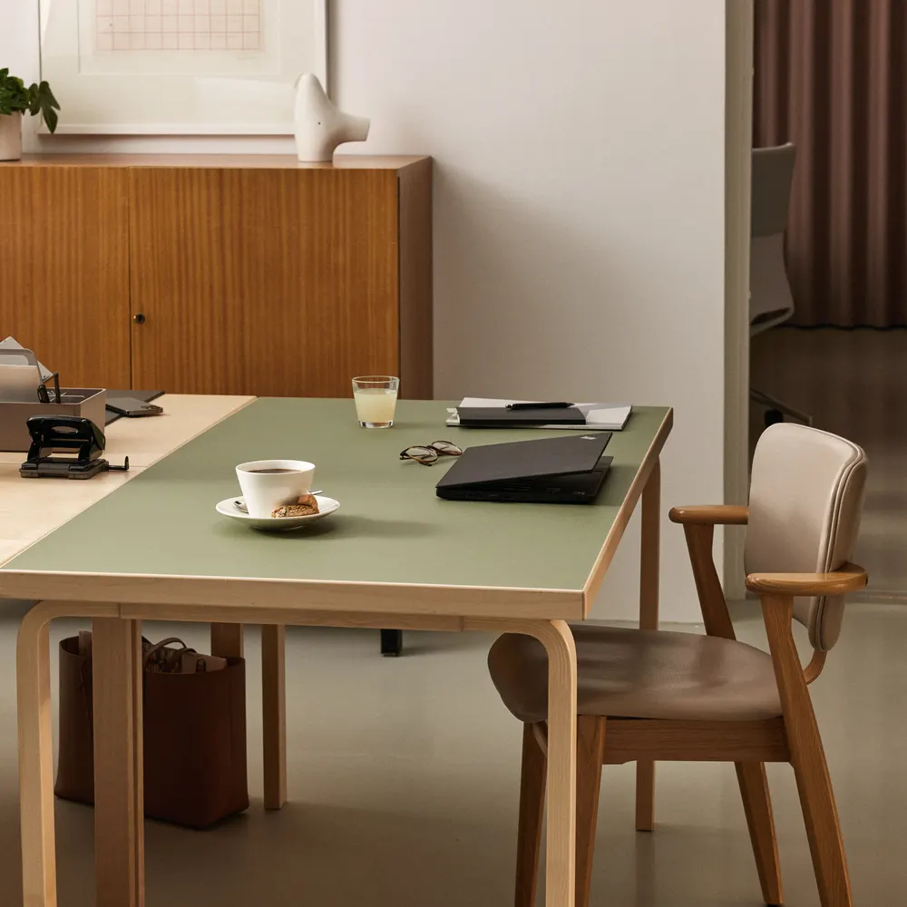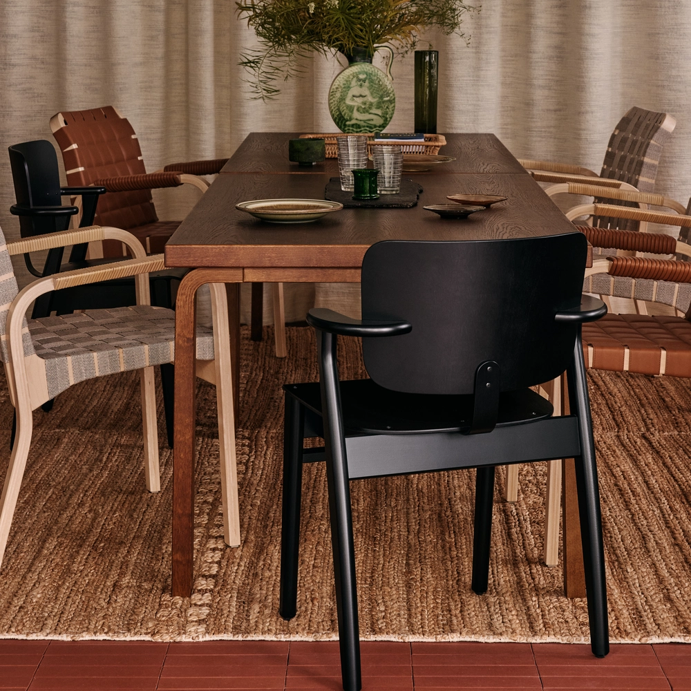 - Domus tuolin lyhyet käsinojat tarjoavat yllättävän paljon tukea ja myös mahdollistavat tuolin sijoittamisen lähelle pöytää.
