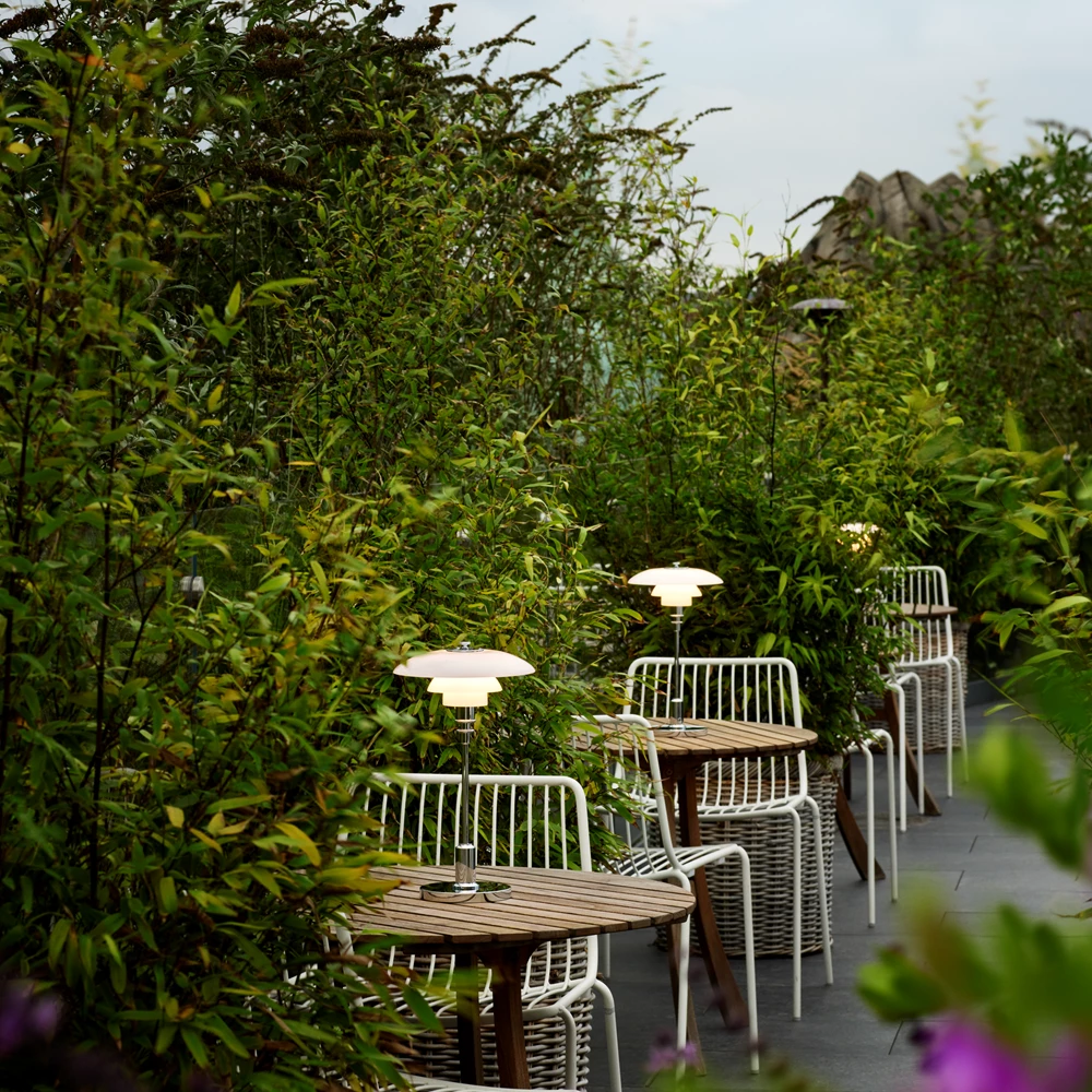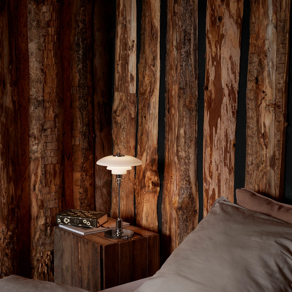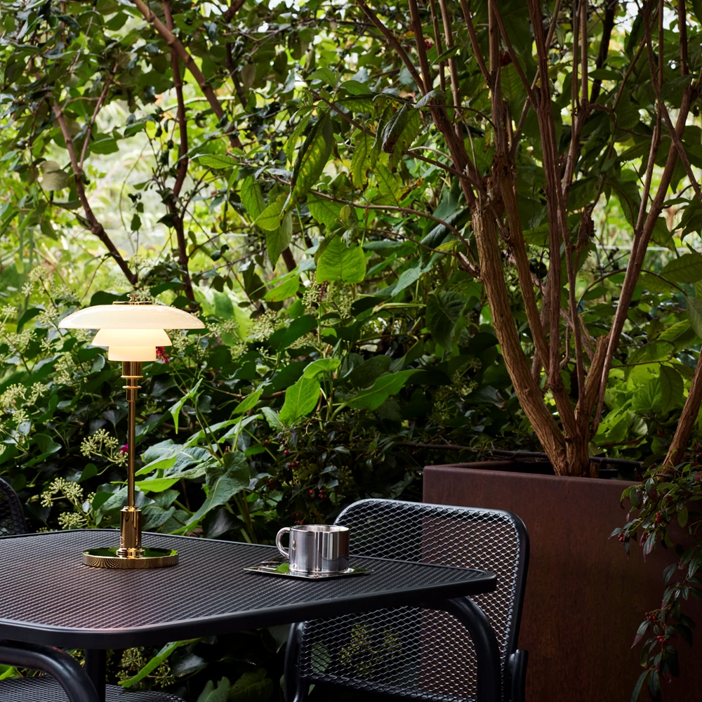 Poul Henningsen pyrki saamaan aikaan häikäisemätöntä ja suoraa valoa sinne, missä sitä eniten tarvitaan, ja luomaan pehmeitä varjoja käyttämällä hehkulamppuja valonlähteenä.Henningsenin matemaattinen lähestymistapa valaistukseen logaritmisen spiraalin avulla johti kolmivarjostinjärjestelmän kehittämiseen vuosina 1925–1926 ja siitä seuranneeseen tuoteperheeseen, johon on vuosien varrella kuulunut satoja malleja lattiavalaisimista pöytävalaisimiin, riippuvalaisimiin, kattokruunuihin ja seinävalaisimiin.PH 2/1 Portable on johdoton versio klassisesta pienestä pöytävalaisimesta, jossa on suupuhalletut opaalilasivarjostimet sekä korkeakiiltoisesta kromista tai metalloidusta messingistä valmistettu runko ja jalusta.Valaisimen kannettava versio sopii erinomaisesti sekä sisä- että ulkokäyttöön, erityisesti paikkoihin, joissa verkkovirtaa ei välttämättä ole helposti saatavilla, kuten kirjahyllyyn tai yöpöydälle.