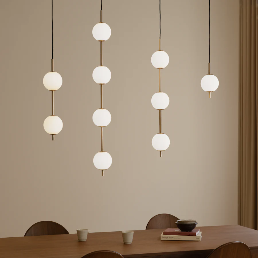 Audrey riippuvalaisin tuo kotiin hienostunutta ilmettä. Saatavana 1-, 2-, 3- ja 4-osaisena. Opaalilasikuvut huokuvat lämpöä ja eleganssia, ja ne muistuttavat hohtavia helmiä.